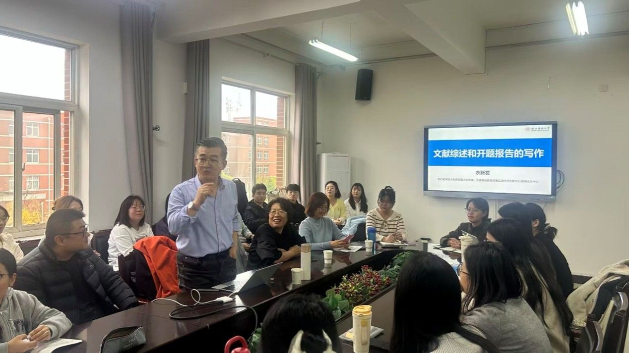 衣新发教授作了题为《文献综述和开题报告的写作》的专题报告。在分享中,衣教授以个人经验为例,深入解析了创新创造对学术研究的必要性,并从选题策略、研究思路、报告撰写三方面为在场师生提供了具体的学术指引。同时,衣教授强调要关注学科发展需求,注重研究的必要性、独特性和未来可行性,勉励在场师生广博阅览,勤加练习。