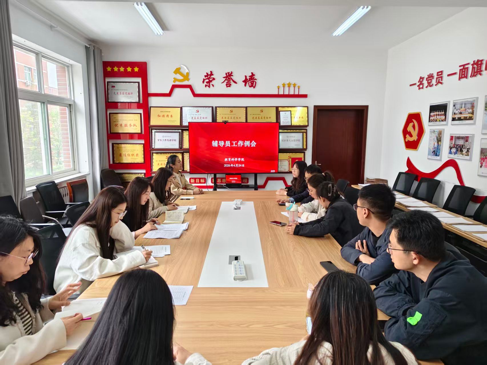 在8号楼201会议室召开辅导员工作例会。全体辅导员参加会议,会议由院党委副书记、学工组长高霞主持。