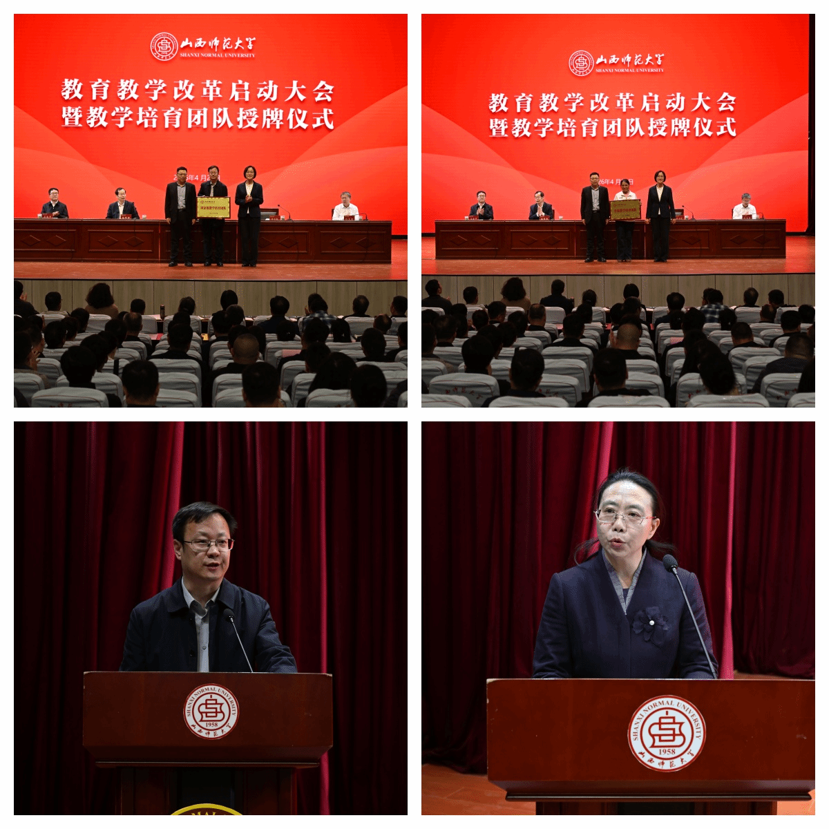 4月28日,学校在科学会堂报告厅举行教育教学改革启动大会暨教学培育团队授牌仪式,全体校领导出席会议。会议由校长许小红主持。校党委书记殷杰讲话,副校长王小平对2025年学校教学工作进行总结并对2026年工作进行部署。