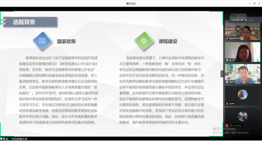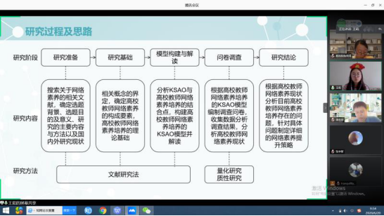 6月20日上午,2021届教育技术学专业研究生学位论文第二组开题会议以线上腾讯会议方式举行。会议由王丽珍教授主持,王永军老师、李玲静老师和康桂珍老师及该组12名学生参加了本次会议。王丽珍教授首先宣读了会议的目的与要求,介绍了会议的流程。随后,12位同学按顺序进行开题PPT展示,5分钟完成自我陈述,15分钟师生讨论。自我陈述时,研究生按照顺序依次介绍选题背景,缘由,研究目的,研究方法,研究思路和内容,以及可能的研究突破。师生讨论时,评审组的专家们从论文题目,研究内容,研究方法以及研究思路等方面对研究生提出了指导性意见,对同学们进一步修改完善开题报告和明确研究方案具有重要作用。在会议结束时,王丽珍教授总结道,此次开题报告会的目的是确定和完善硕士毕业生的论文选题及内容,希望会后学生对评审老师提出的建议及时吸取消化,与自己导师商定后做出相应修改,以便后期顺利开展论文写作。