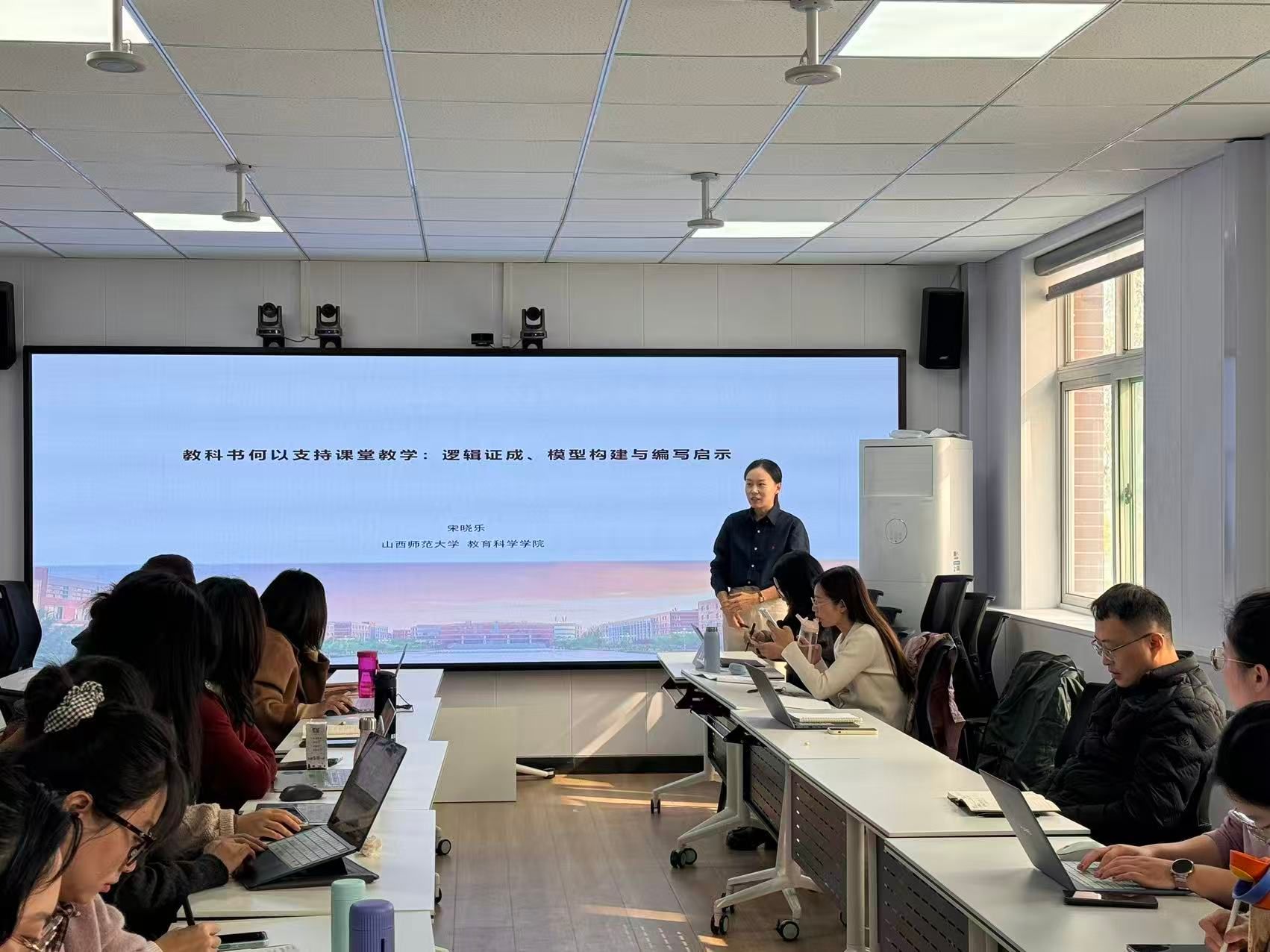 此次学术沙龙分为报告分享、总结点评两个环节。在报告分享环节,李润亚博士、智耀徵博士、宋晓乐博士分别作了题为《新建本科院校创业教育对大学生创业行为的影响研究》《研究生学科结构与产业结构耦合对经济高质量发展的影响》《教科书何以支持课堂教学:逻辑证成、模型构建与编写启示》的专题分享。在总结点评环节,到场的博士们从选题方向、研究范式和逻辑路径等方面,对三位博士的研究分别进行了针对性的点评,提出了富有建设性的改进建议。