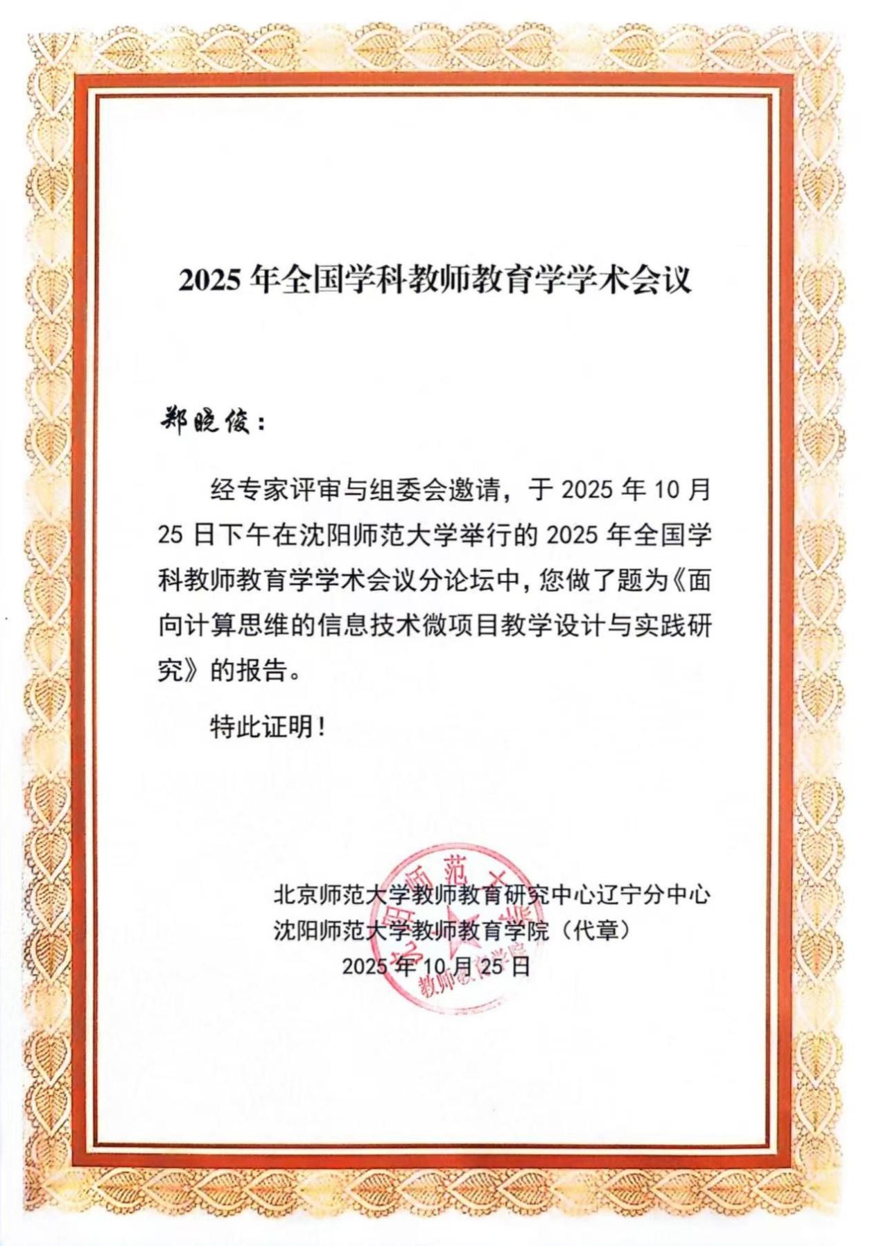 2025年10月25日至26日,真人试玩 教师张荣华和郑晓俊参加了在沈阳师范大学举办的2025年全国学科教师教育学学术会议。会议围绕“数智时代的学科教师教育学:理论重构与实践创新”这一主题展开,由沈阳师范大学及教育部普通高校人文社会科学重点研究基地北京师范大学教师教育研究中心主办,沈阳师范大学教师教育真人试玩 及北京师范大学教师教育研究中心辽宁分中心承办。