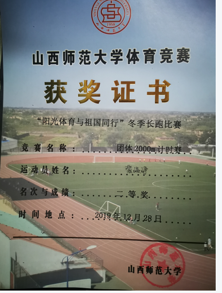 2019年冬季长跑比赛团体二等奖