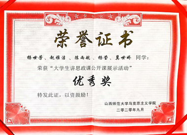 2020年“大学生讲思政课公开课展示活动”优秀奖