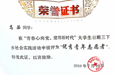 2019年暑期三下乡优秀青年志愿者