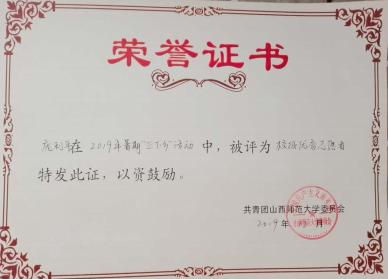 2019年暑期三下乡优秀青年志愿者